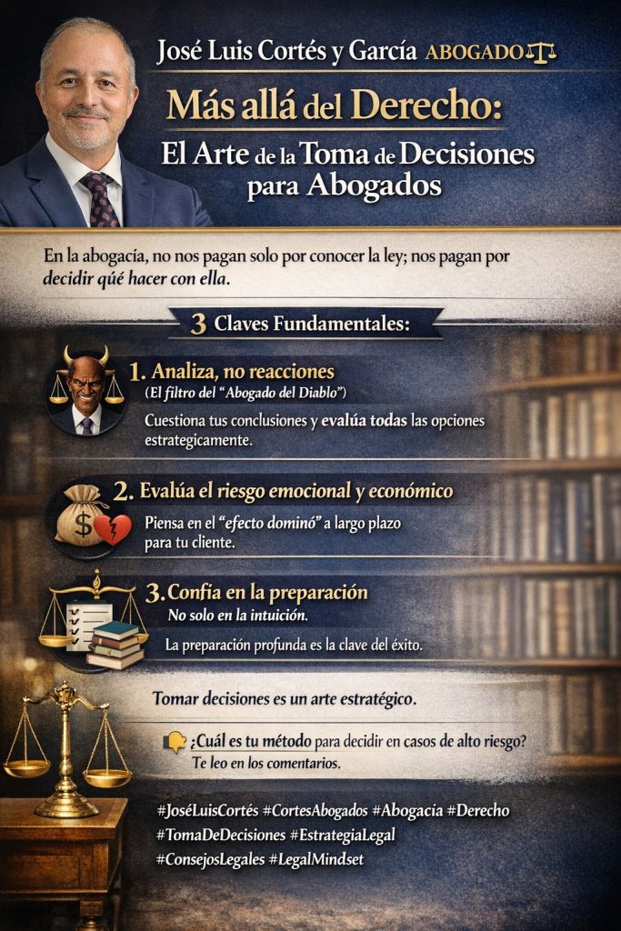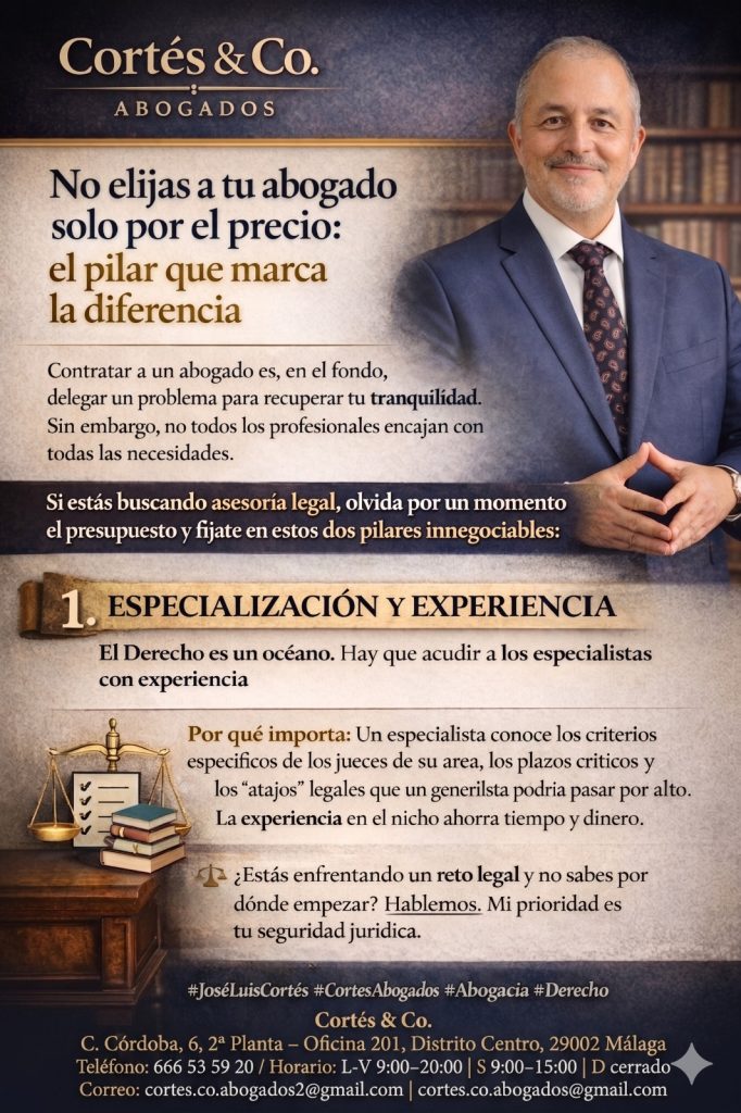 Contratar a un abogado no es solo encargar un trámite. Es confiar un problema importante para recuperar tranquilidad, seguridad y control. En Cortés & Co. Abogados sabemos que cada asunto exige una estrategia propia. Por eso, más allá del presupuesto, hay un factor decisivo: Especialización y experiencia. El Derecho es un océano. Un buen asesoramiento exige conocimiento técnico, visión práctica y experiencia real ante los tribunales. La experiencia permite anticipar riesgos, valorar escenarios, elegir la vía adecuada y proteger mejor los intereses del cliente. Porque una buena defensa no empieza en el juicio. Empieza en la decisión correcta. ⚖️ ¿Estás afrontando un problema legal y no sabes por dónde empezar? Hablemos. Nuestra prioridad es tu seguridad jurídica.Cortés & Co C. Córdoba, 6, 2ª Planta – Oficina 201, Distrito Centro, 29002 Málaga Teléfono: 666 53 59 20 Horario: L-V 9:00–20:00 | S 9:00–15:00 | D cerrado Correo: cortes.co.abogados2@gmail.com | cortes.co.abogados@gmail.com JoséLuisCortés #JoseLuisCortes #CortesAbogados #AbogadoCortes #Abogacía #Derecho #TomaDeDecisiones #EstrategiaLegal #ConsejosLegales #LegalMindset